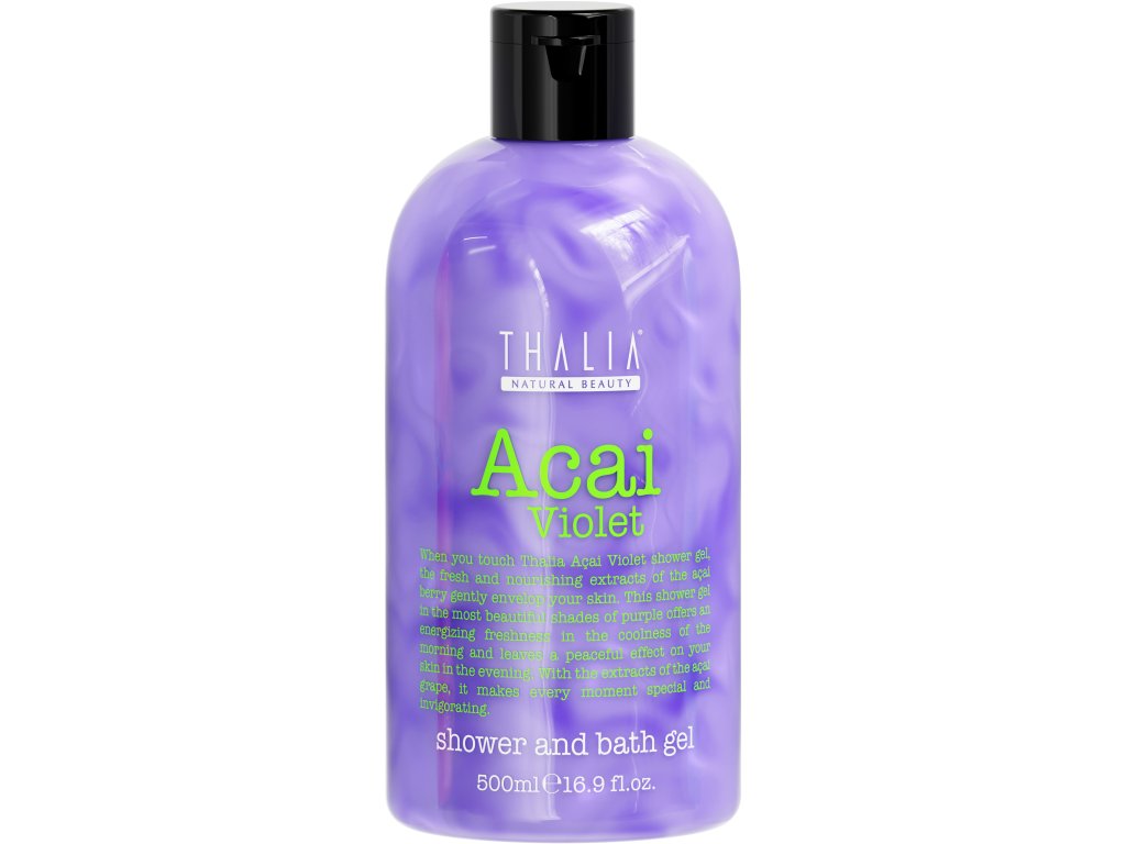 - Přijměte dotek sprchového gelu Violet Acai. Svěží a výžívné výtažky z bobulí acai jemně zahalí vaši pokožku do hebkosti. Díky zářivým fialovým odstínům nabízí tento sprchový gel osvěžující závan svěžesti v chladném ranním vzduchu a večer přináší pokožce uklidňující pocity. Extrakty z bobulí acai promění vaši každodenní rutinu v revitalizační rituál, díky kterému bude každý okamžik nezapomenutelný a osvěžující.