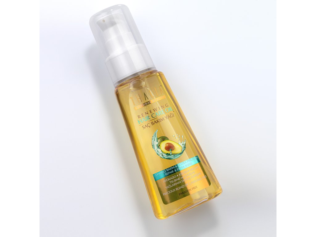 Ebru Salli od Thalia Avocado Hair Care Oil je intenzivně vyživující vlasový olej, který obsahuje směs vysoce kvalitního organického avokádového oleje. Vlasy jsou hloubkově vyživeny, aniž by se cítily těžké nebo mastné. Speciálně vyvinuté složení dodává vlasům zářivý lesk a zlepšuje strukturu a elasticitu hluboko ve vlasových vláken, díky čemuž jsou hedvábně hladké. Používejte pro styling, péči a pro snadnější úpravu vlasů. Bohatá koncentrace omega-3 a 9 mastných kyselin a antioxidantů optimálně chrání vlasy před teplem a volnými radikály.