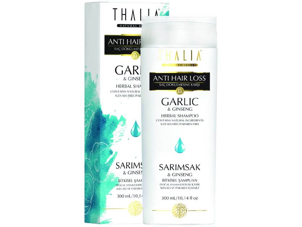 Šampon Thalia s česnekem a ženšenem proti vypadávání vlasů, který intenzivně obsahuje extrakty z česneku a ženšenu, posiluje vlasové folikuly a s těmito dvěma speciálními produkty pomáhá omezit intenzivní vypadávání vlasů.