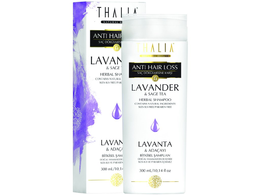 Šampon Thalia s levandulí a šalvějí je bylinný šampon, který účinně působí proti vypadávání vlasů a je vhodný pro mastné vlasy. Intenzivní extrakt z levandule chrání tukovou rovnováhu pokožky hlavy, díky čemuž jsou vlasy vitální a plnější. Levandule, sůl a fytokomplex AHL poskytují silný šampon se svěží vůní levandule.